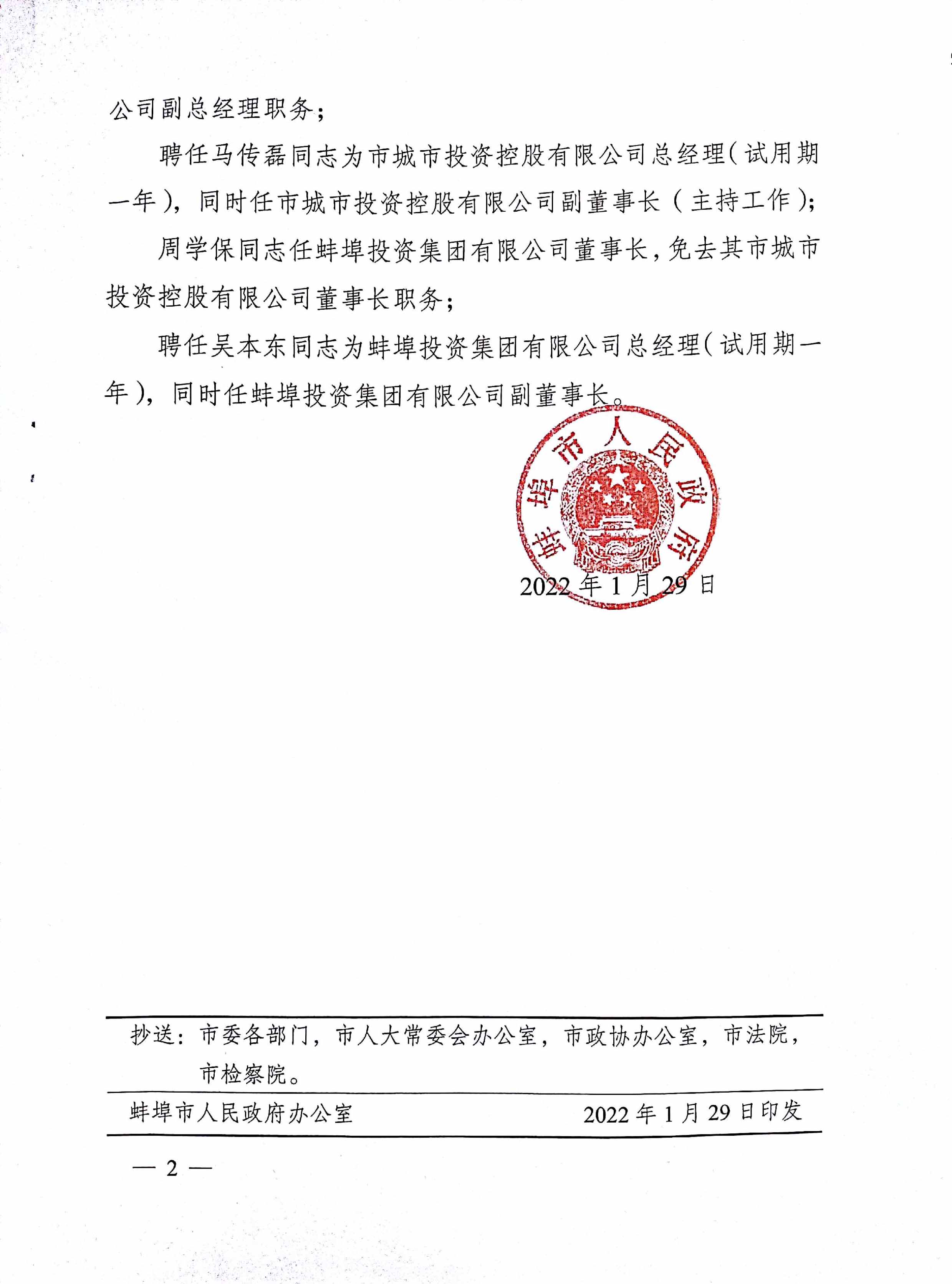 馬傳磊同志任城投公司總經理