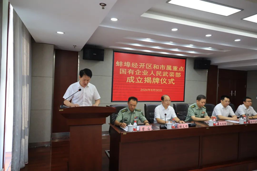 8月30日,蚌埠經開區和市屬重點國有企業人民武裝部成立揭牌儀式在市城投公司舉行。蚌埠軍分區司令員王達林、副市長熊言松出席揭牌儀式。市城投公司黨委書記、董事長沈明仕致歡迎辭。蚌山區委、市委組織部、市委編辦、市發改委、市國資委、軍分區動員處、政治工作處以及專武干部代表等...
