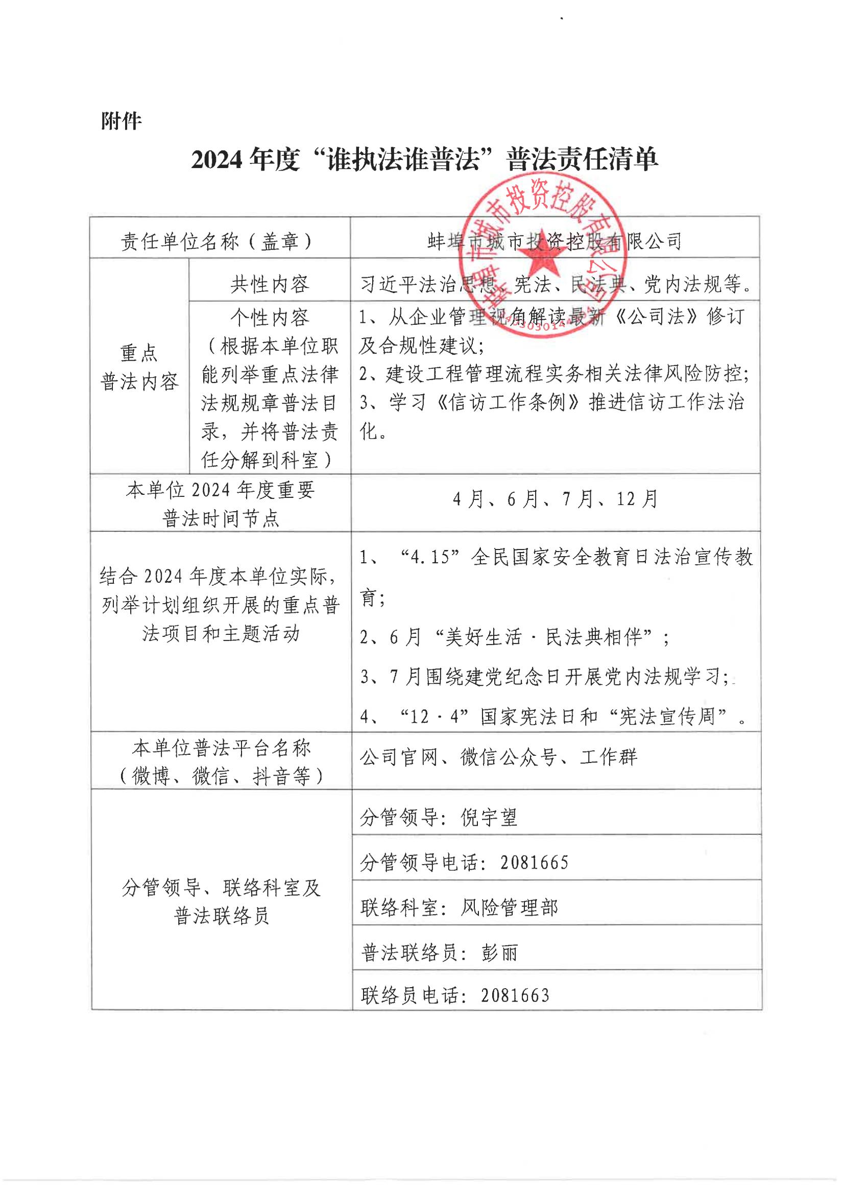 2024年度“誰執法誰普法”普法責任清單