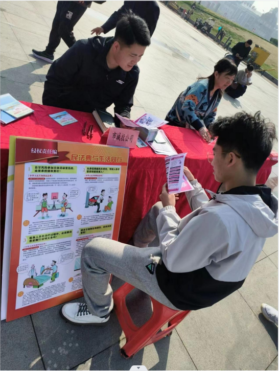 活動現場,按照主辦方要求,市城投公司將提前制作的宣傳展板置于指定展示地點,供來往市民閱覽學習,并通過設立普法宣傳咨詢臺接受現場答疑解惑、發放《中華人民共和國憲法》《中華人民共和國民法典》、“掃黃打非”、“防電信詐騙”等宣傳物料等方式向市民進行普法。