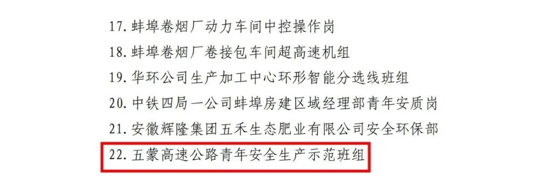 近日,共青團蚌埠市委印發《關于命名2023年度蚌埠市“號手崗位”的決定》(蚌青〔2024〕10號)經嚴格審核、擇優選拔,蚌埠城投康養公司榮獲2023年度蚌埠市“青年文明號”稱號 蚌埠城投五蒙高速公司榮獲2023年度蚌埠市“青年安全生產示范崗”稱號 蚌埠城投建工公司榮獲2023年度...