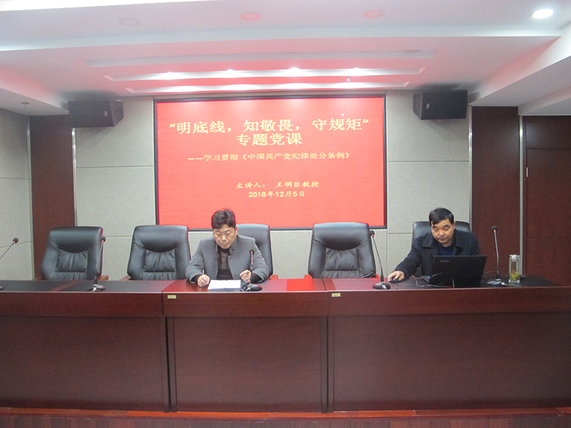 為深入推進公司黨的紀律建設和黨員黨性教育,市城投公司邀請市委黨校王明臣教授開展了以“明底線、知敬畏、守紀律”為主題的學習貫徹《中國共產黨紀律處分條例》主題黨課。 會上,王明臣教授講述了《中國共產黨紀律處分條例》修訂情況及意義,對最新出臺的《中國共產黨紀...