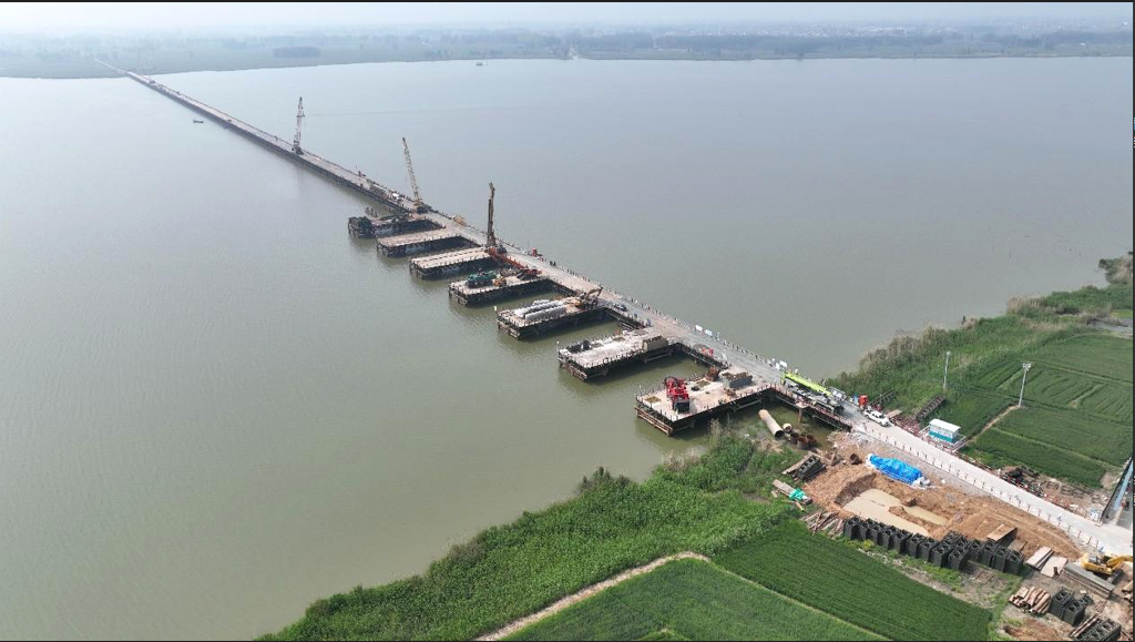 蚌埠城投五蒙高速公路項目TJ-01標段沱湖特大橋施工鋼棧橋順利合龍