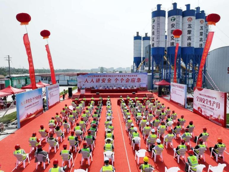 2023年6月1日,五蒙高速公司在固鎮縣TJ-04標拌合場站內舉辦2023年安全生產月活動啟動儀式,活動主題為“人人講安全、個個會應急”。五蒙高速公司全體成員及各參建單位代表參加,市交通運輸局、市交通質監大隊領導出席活動。