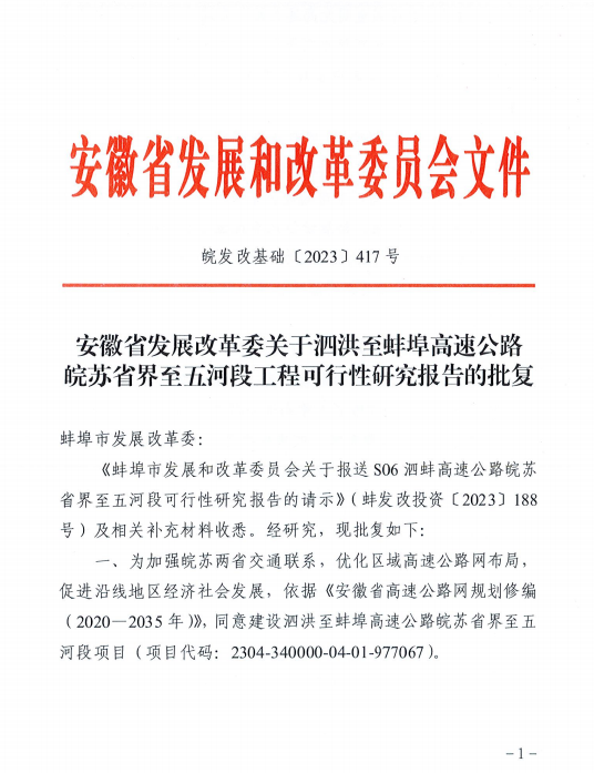 S06泗蚌高速公路皖蘇省界至五河段初步設計通過省交通運輸廳審查